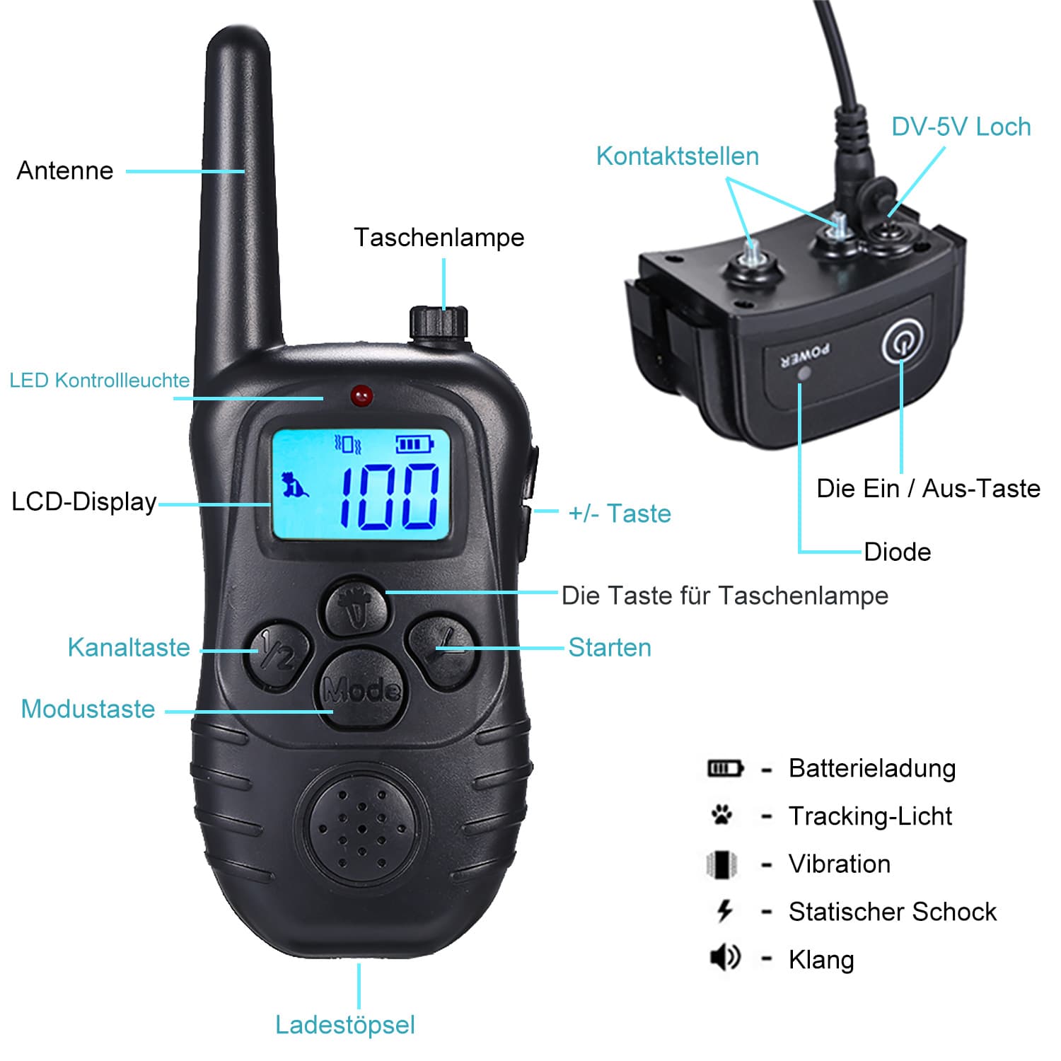 Sicher, human, robust und hocheffizient für die Erziehung Ihres Haustiers. Für sanftmütige bis störrische Hunde: Die praktische, ultraleichte digitale LCD-Fernbedienung signalisiert Ihrem Hund, auf seine Befehle zu hören.